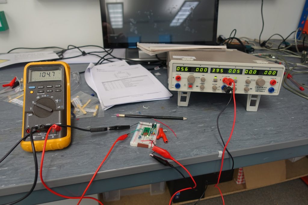 The first board I made is on the picture below on the left. Note that I soldered the inductor directly to this board. It worked. Lovely. Then I shorted the VBST pin to ground with a crocodile clip. Careless. Not that I’m bitter. Still, a bit of care would have avoided this. I learned my lesson.