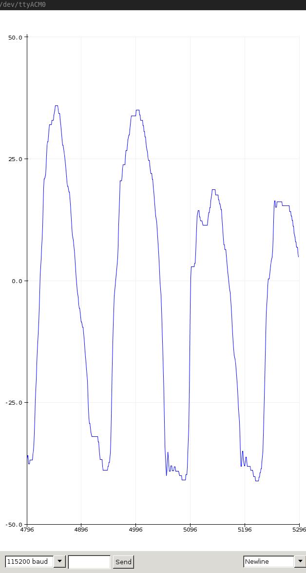 After flashing the code to the board, I can see real time angle data plotting on the Serial Plotter in the Arduino IDE. See below for a screenshot.