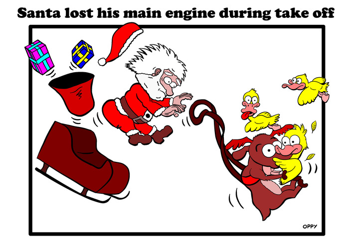 Santa has engine trouble! Maybe he can do a Sully and make a safe landing. Have to wait until next year to find out…